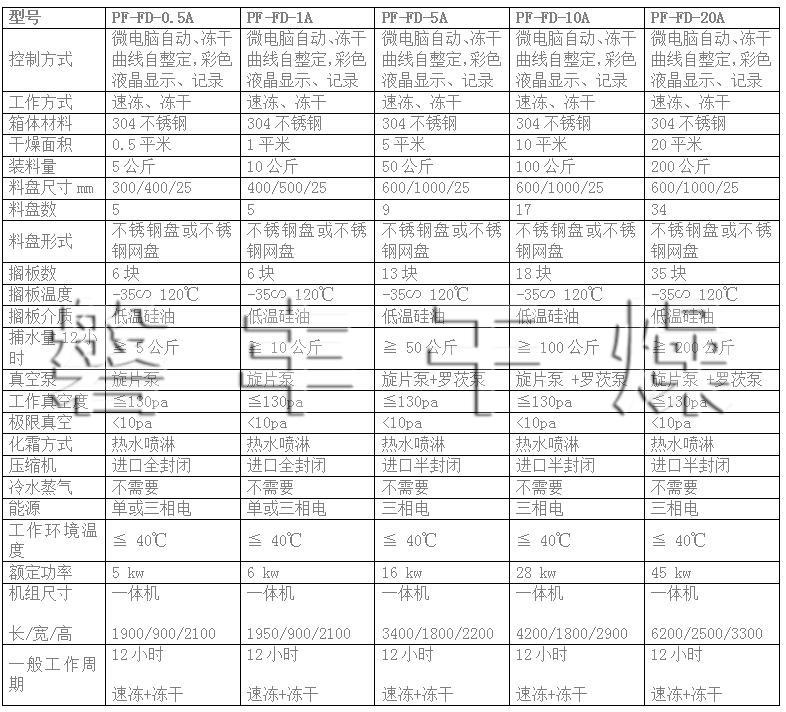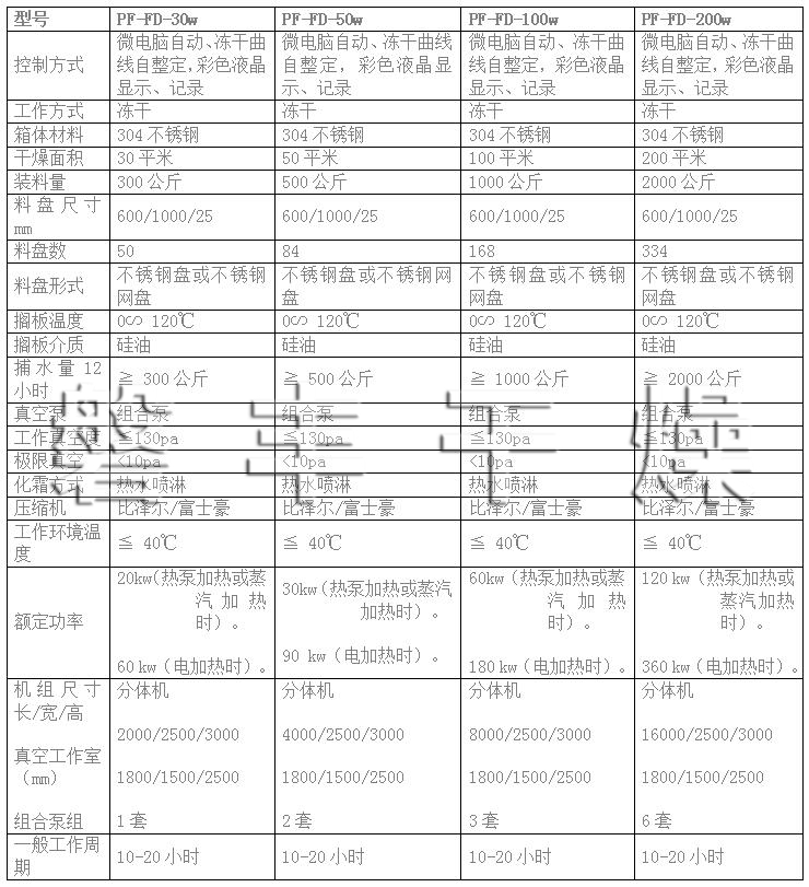 30平米以上凍干機規(guī)格性能(不帶速凍功能;料盤懸掛吊車輸送)